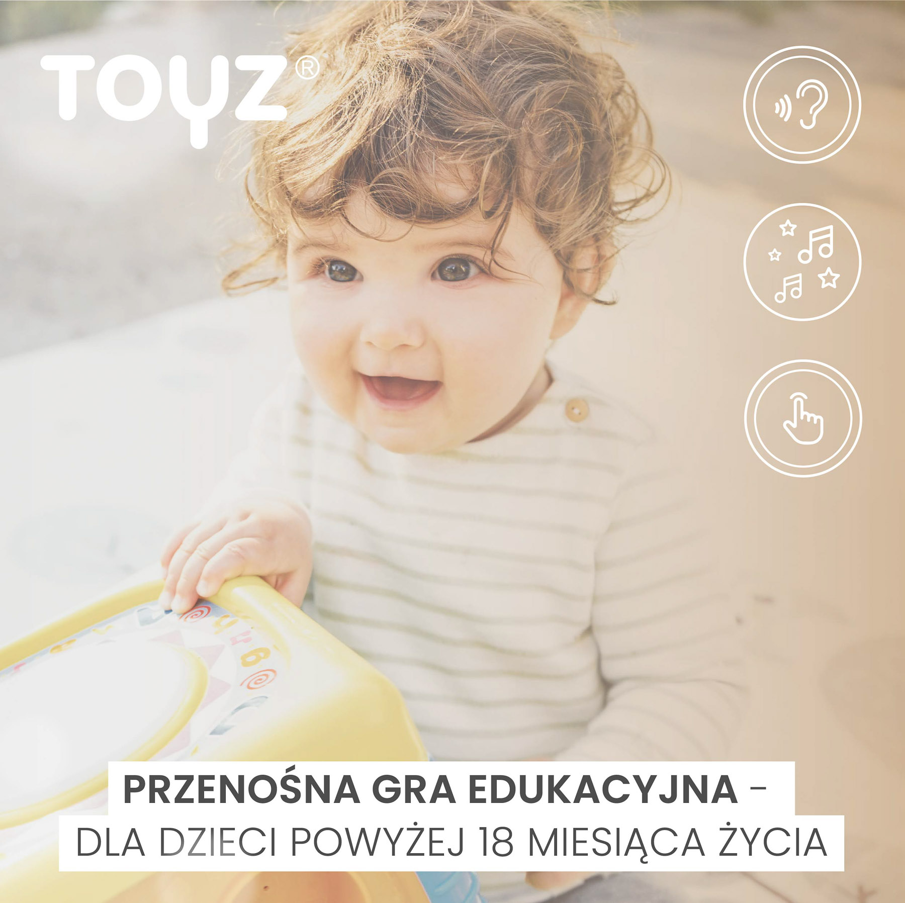 Przenośna konsola edukacyjna została stworzona tak, aby wspierać wszechstronny rozwój dziecka już od 18. miesiąca życia. Dzięki wbudowanym dźwiękom i melodiom maluch uczy się rozpoznawać odgłosy i rozwija wrażliwość słuchową. Różnorodne faktury i przyciski aktywizują zmysł dotyku oraz wspierają rozwój sensoryczny i sprawność manualną. Dołączone do zestawu karty interaktywne pomagają w rozwoju pamięci i doskonalą precyzję małych rączek.