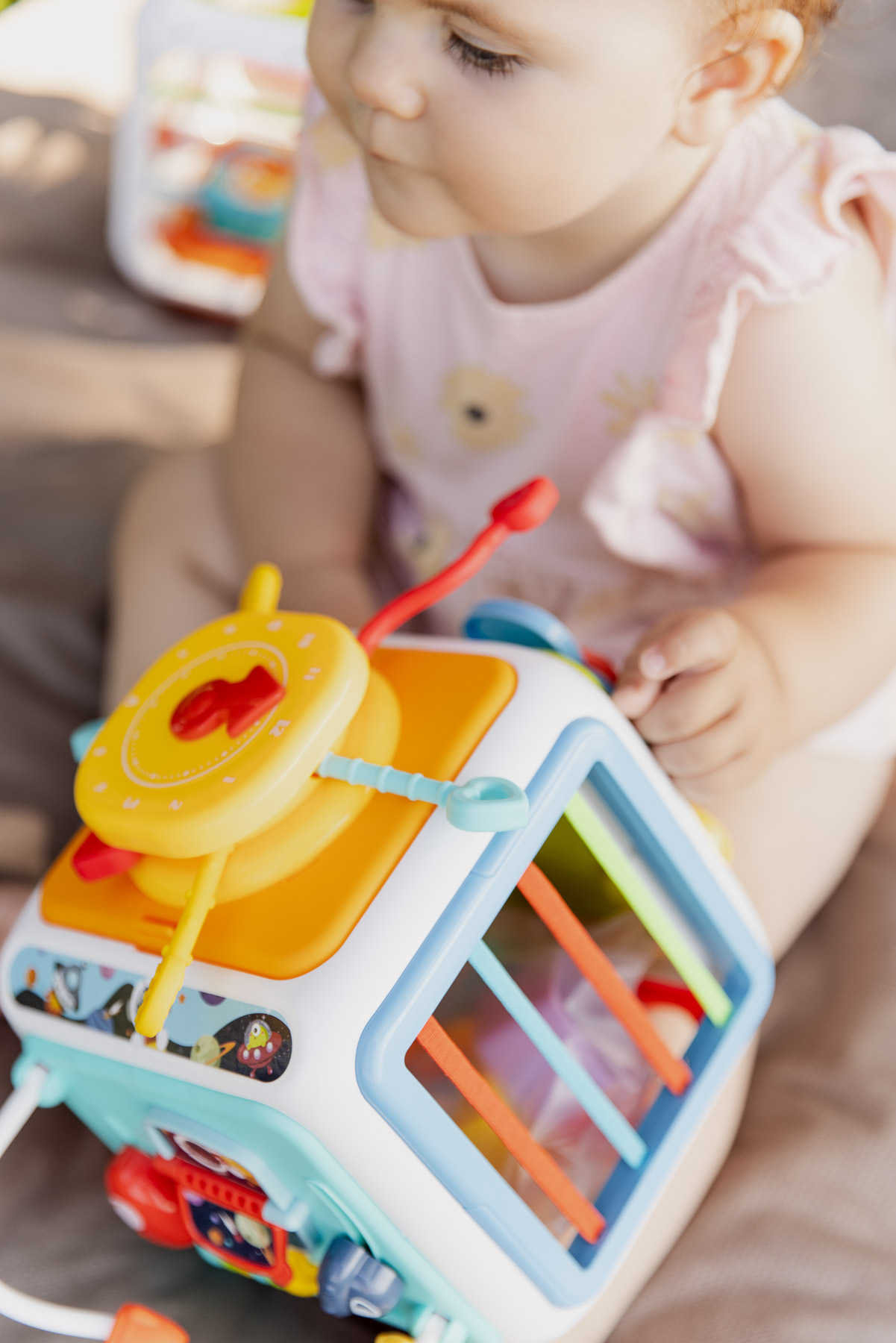 Kostka sensoryczna została zaprojektowana tak, by wspierać rozwój małej motoryki u najmłodszych. Obrotowe kształty zachęcają do chwytania i kręcenia, co rozwija siłę dłoni i precyzję ruchów. Labirynt z koralikami to doskonałe ćwiczenie koordynacji ręka–oko i cierpliwości – przesuwanie elementów po torze rozwija koncentrację oraz zdolność planowania ruchu przygotowując dziecko do dalszych etapów rozwoju, takich jak rysowanie, zapinanie guzików czy trzymanie sztućców.