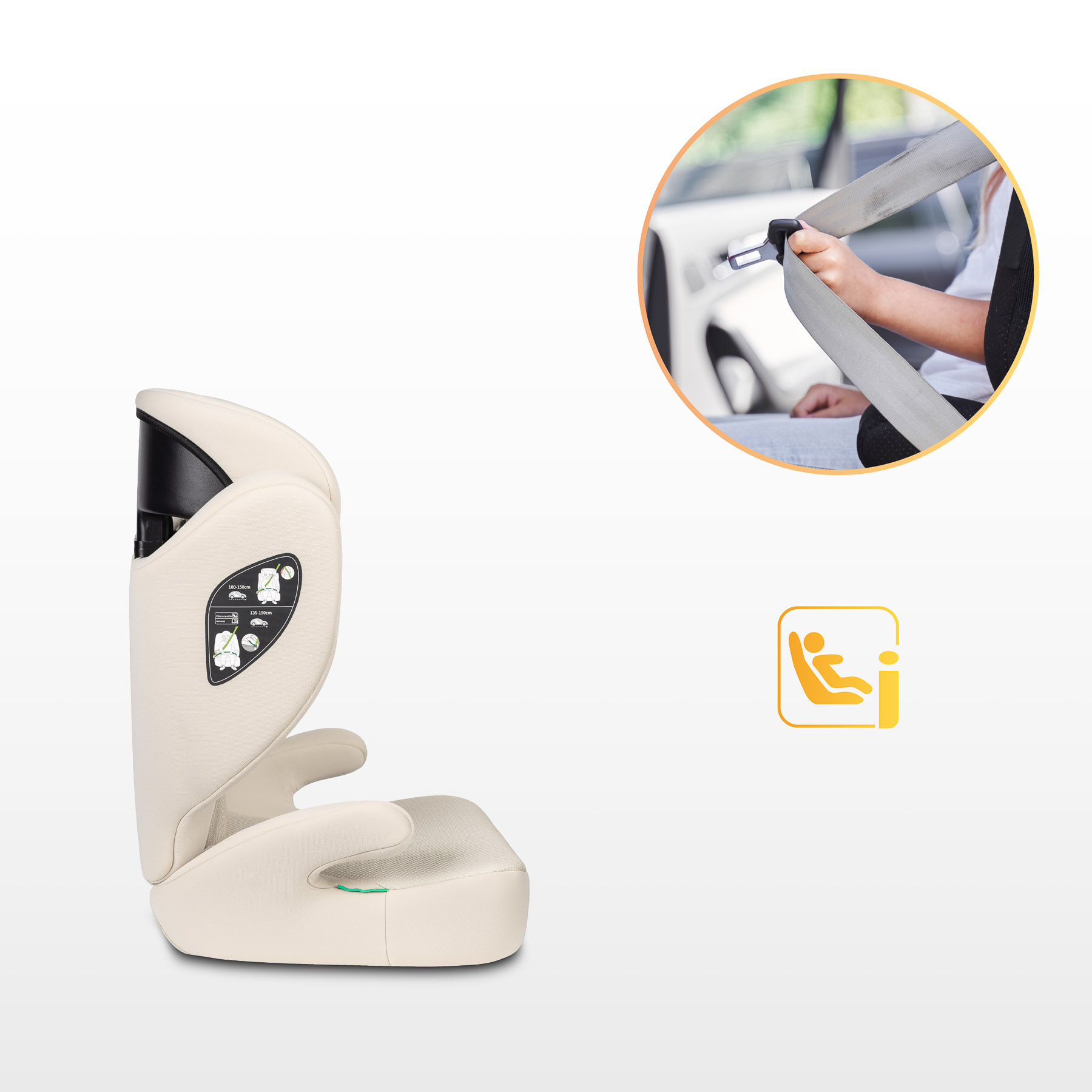 Надійне та стабільне кріплення за лічені секунди Практичні напрямні ременя безпеки в підголівнику та зручні підлокітники забезпечують правильне регулювання ременя безпеки. Ця система мінімізує ризик неправильного встановлення, забезпечуючи стабільне та надійне положення ременя безпеки під час кожної поїздки.