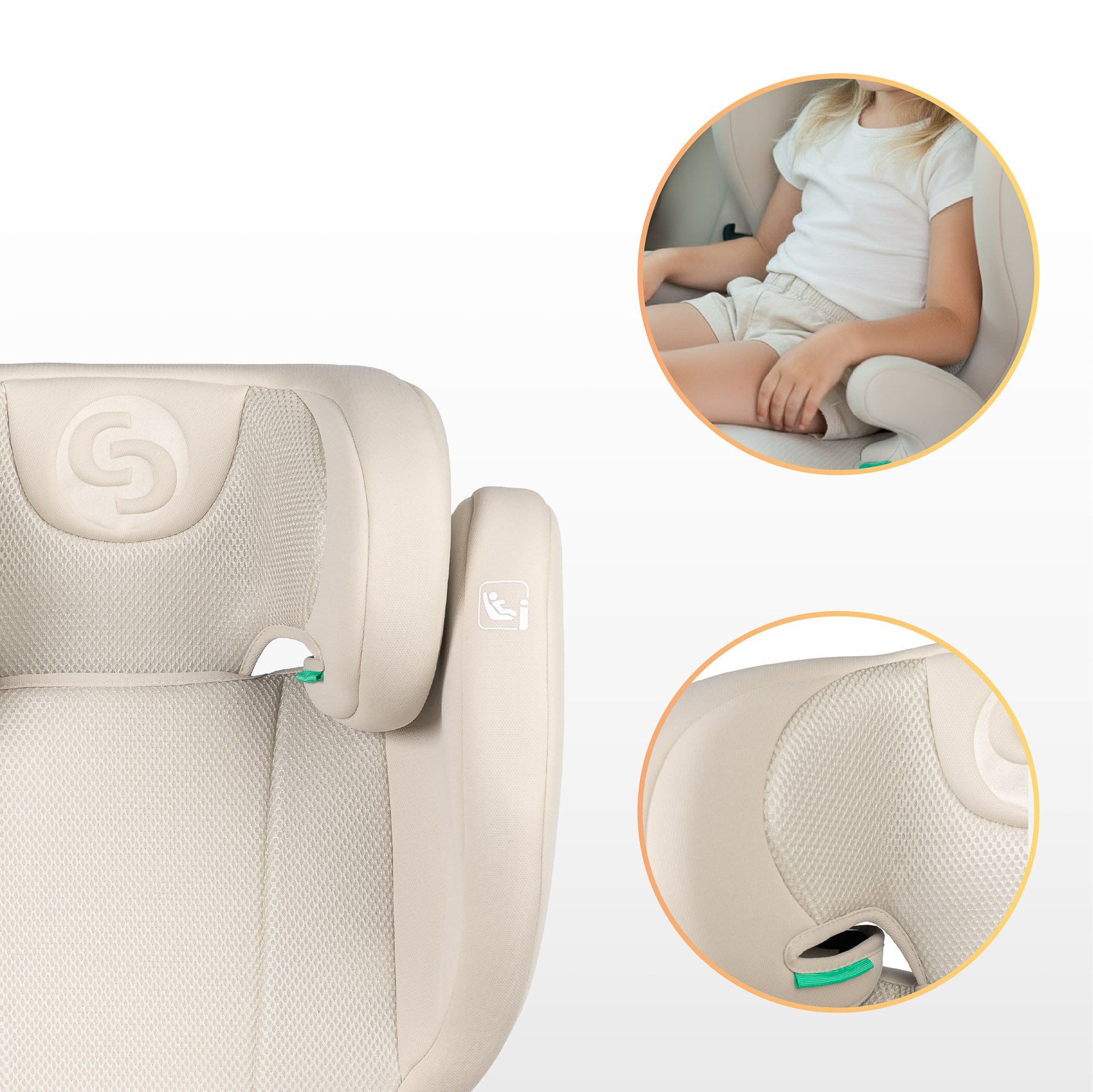 Система BreezeCool – свіжість та комфорт у кожній поїздці Сидіння оснащене інноваційною системою BreezeCool, що базується на дихаючій сітці, яка забезпечує чудову вентиляцію. Матеріал ефективно розсіює тепло та вологу, мінімізуючи ризик перегріву дитини навіть у спекотні дні. Це гарантує комфортну подорож дитини, а батьки можуть бути впевнені, що кожна подорож буде безпечною та приємною.